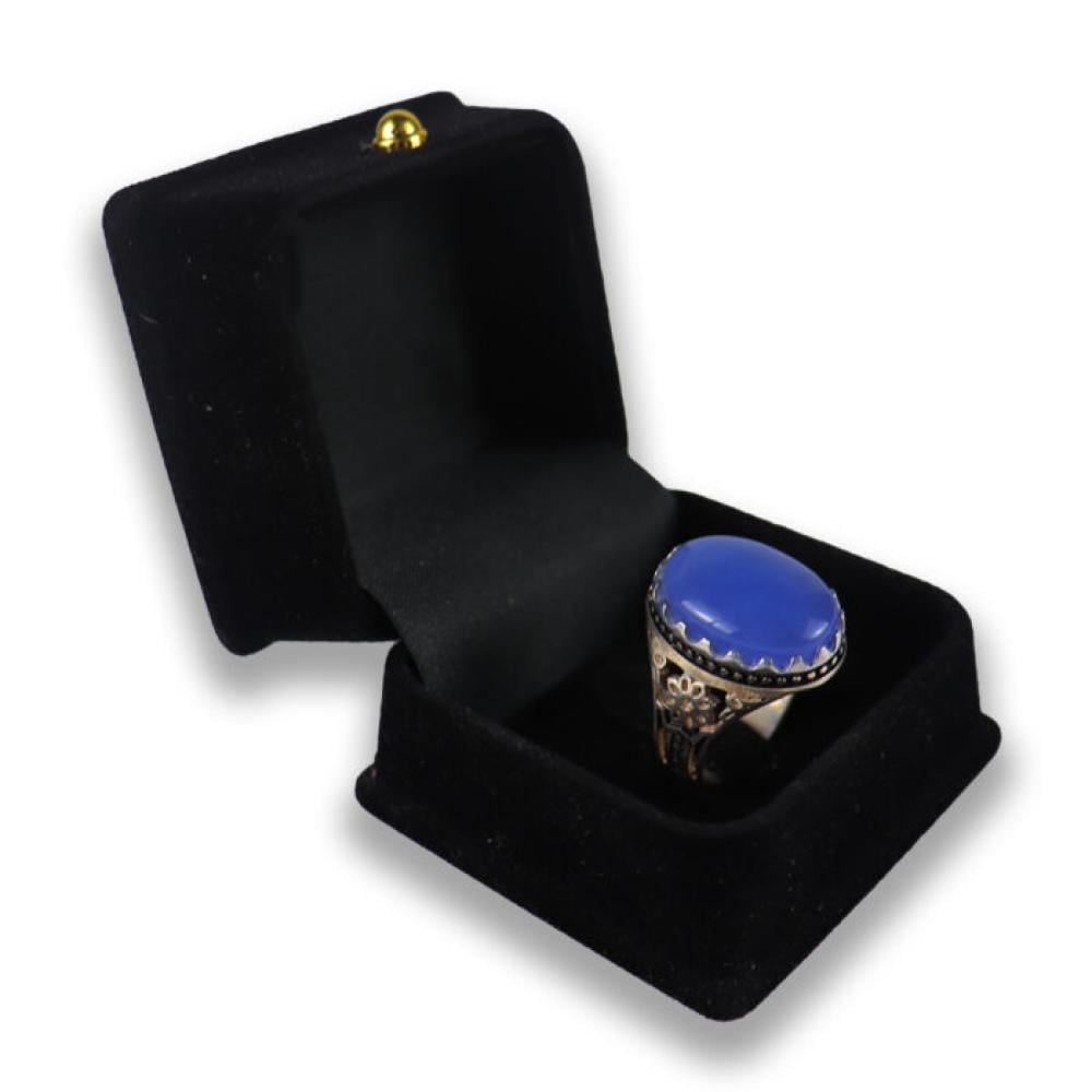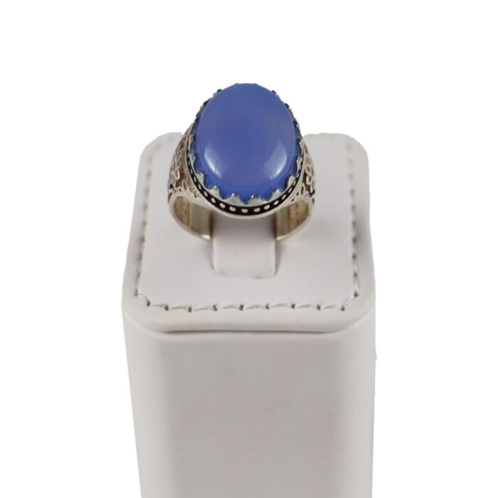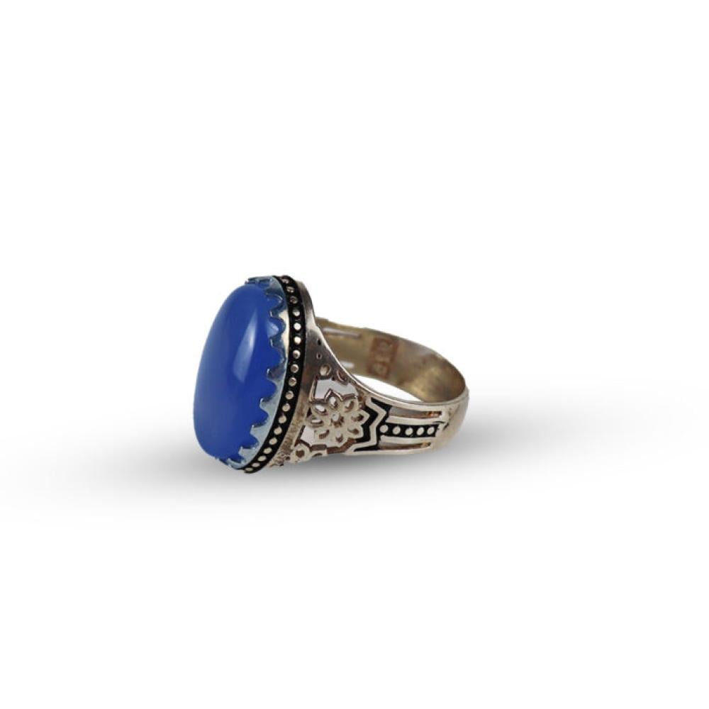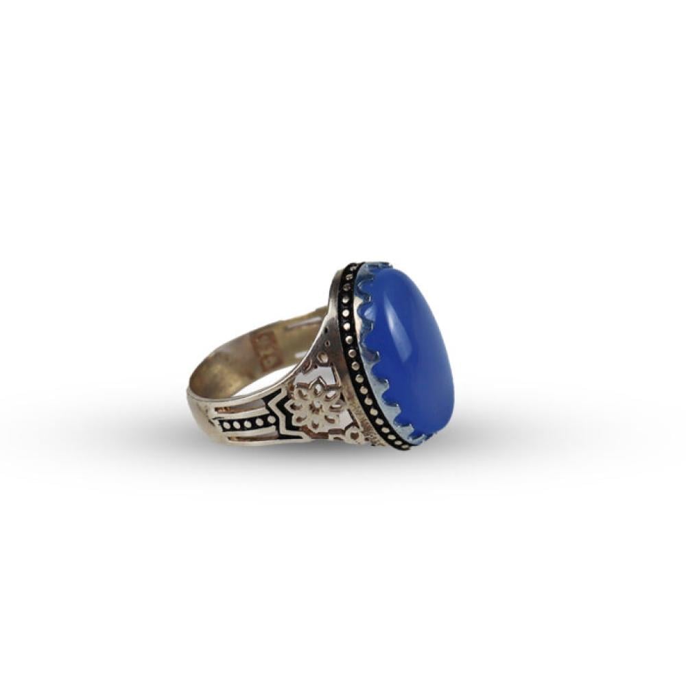 خاتم فضة وعقيق لون ازرق رجالي - E1