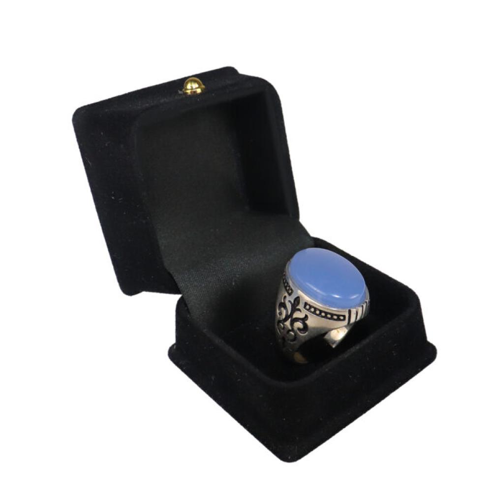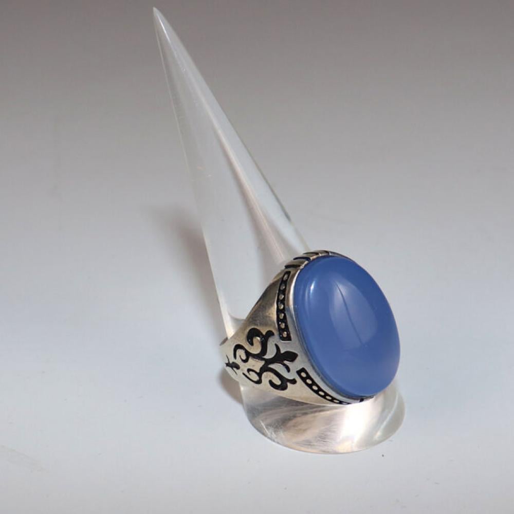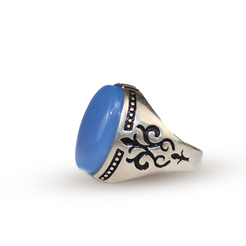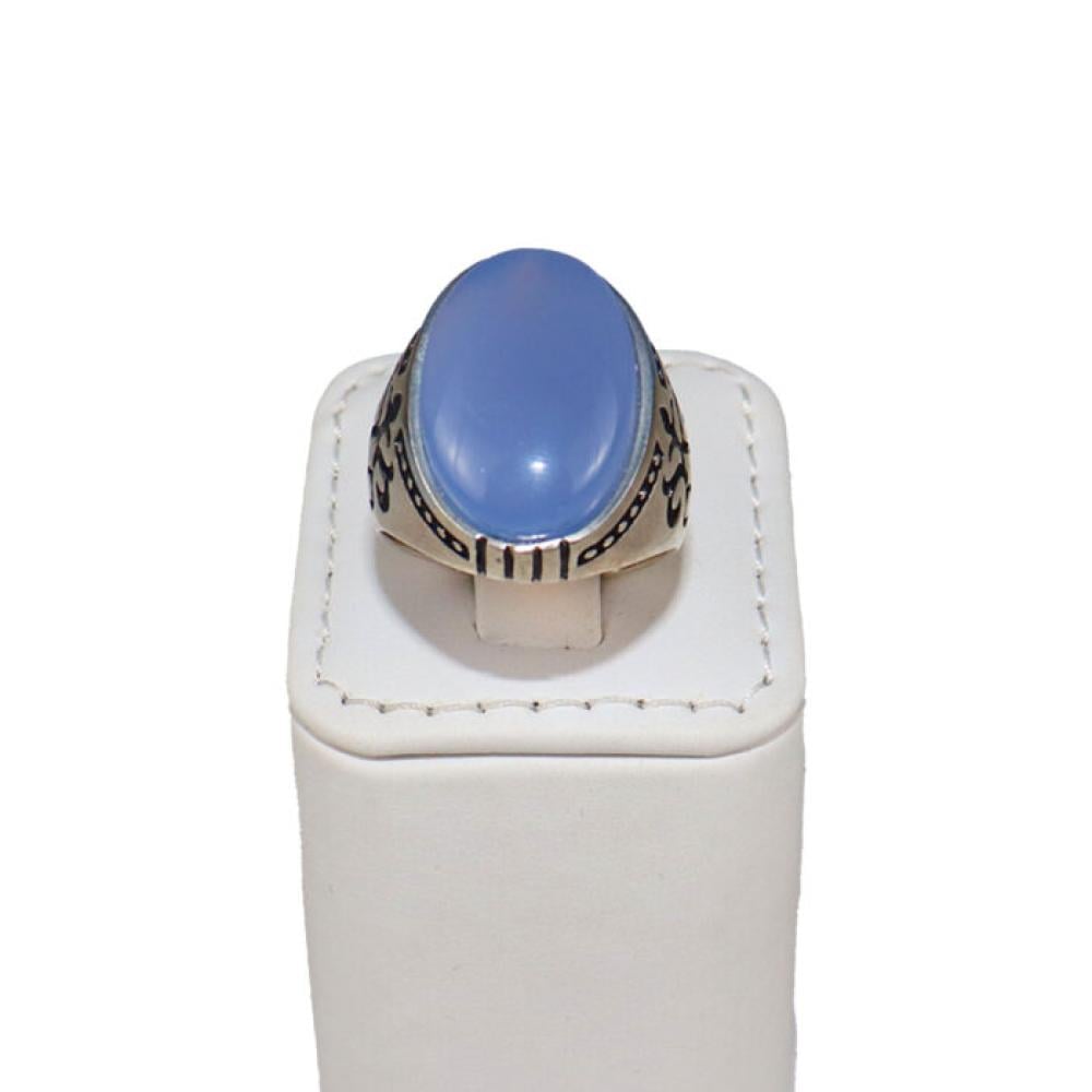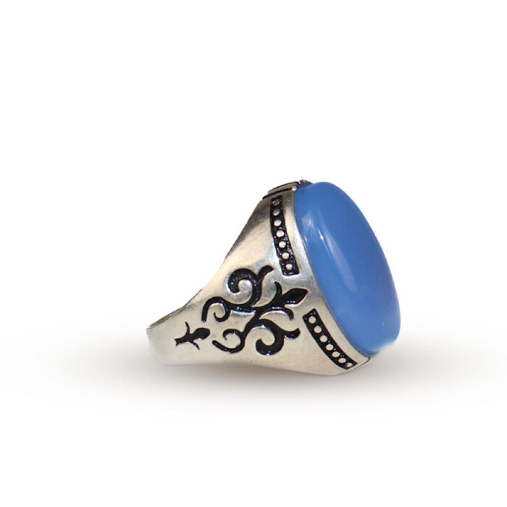 خاتم فضة وعقيق لون ازرق فاتح رجالي - E2