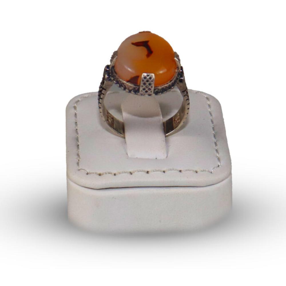 • في وسطه قطعة من العقيق اليماني الفاخر المصقول بشكل رائع و بتداخلات الوانها تعطي مزيج مختلف يزيد من جمال الخاتم .