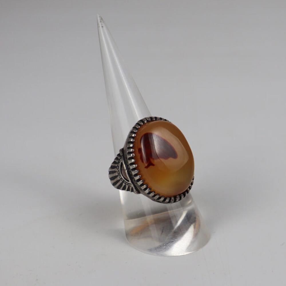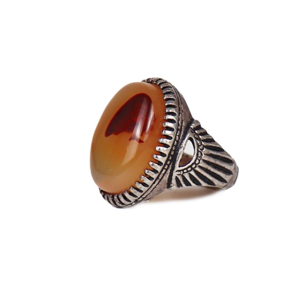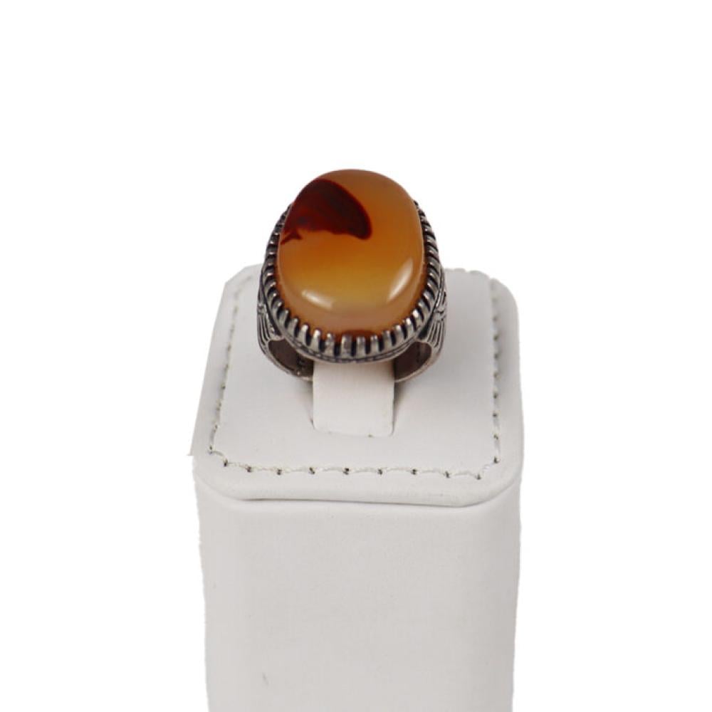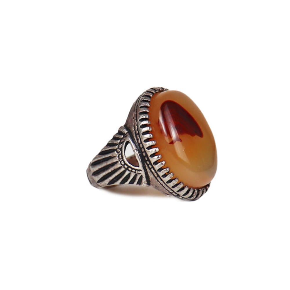 خاتم فضة وعقيق لون جملي رجالي - D9