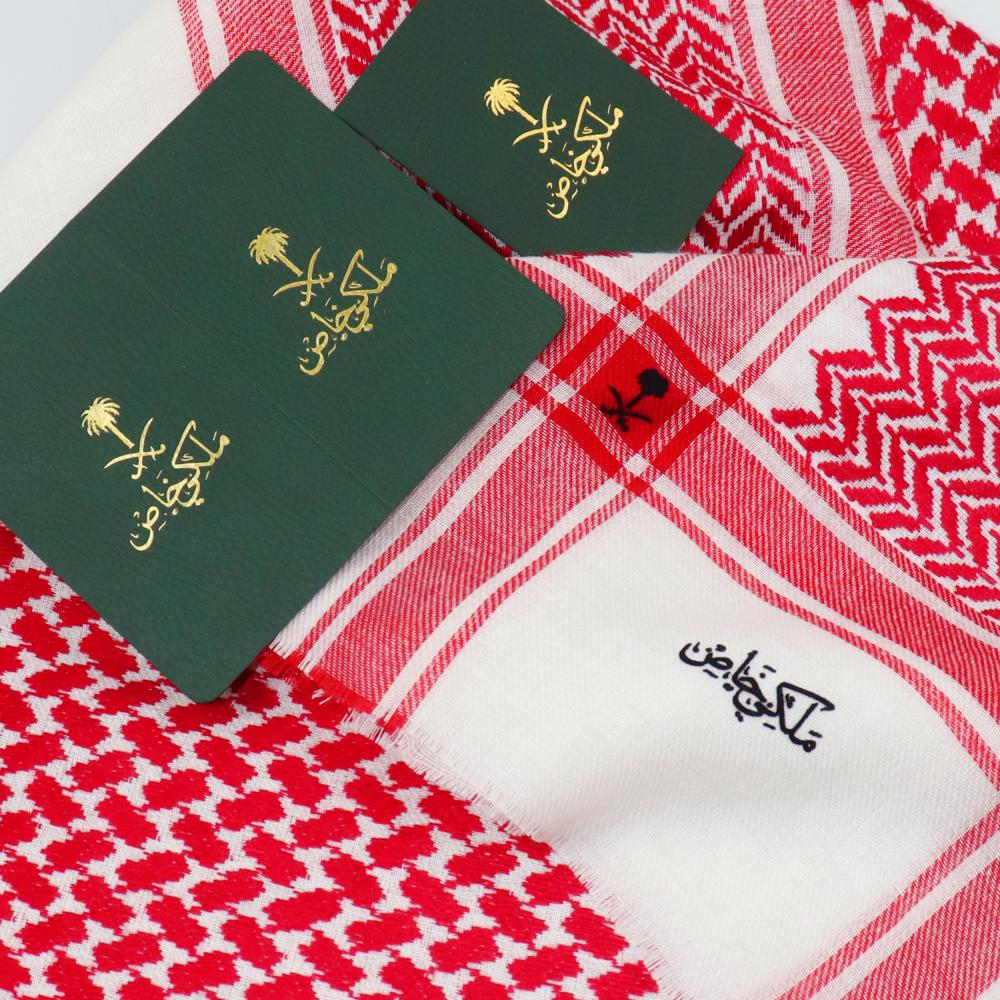 - اللون الأساسي: أبيض مزين بنقشة شماغ تقليدية باللون الأحمر.