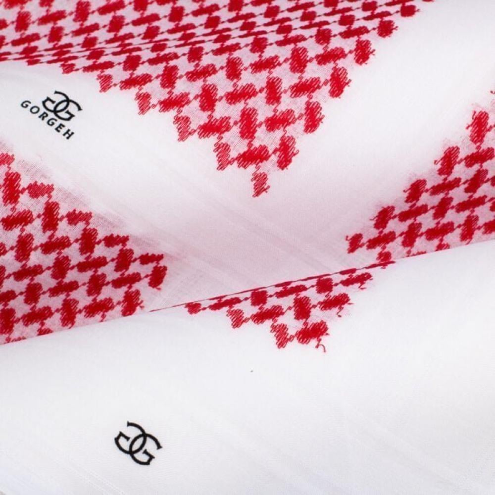 شماغ شبابي ماركة جورجيه من الاشمغه المميزة جدا حيث ان شماغ جورجيه يجمع بين الشكل التقليدي الأصيل للشماغ والهوية الخليجية العربية العصرية والموضة الحديثة في شكل مختلف للتصميم والنقشه المصممة على الشماغ.