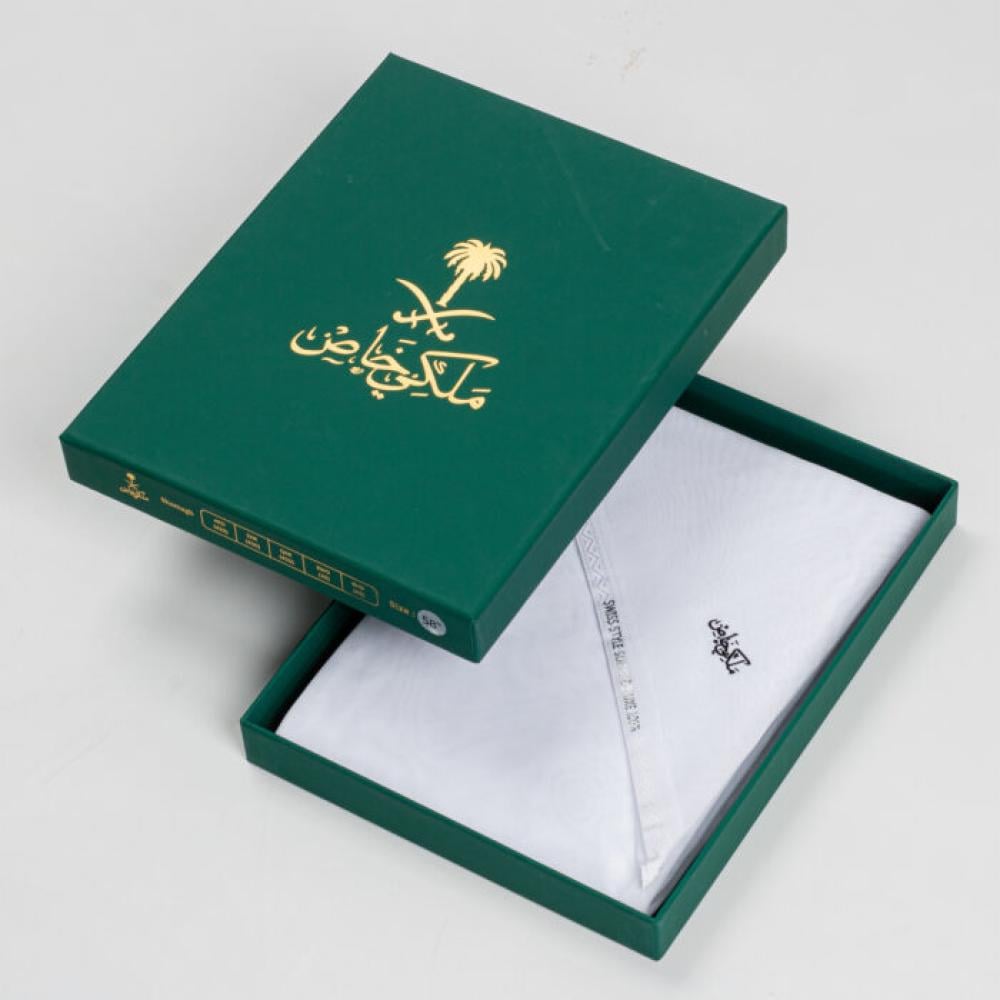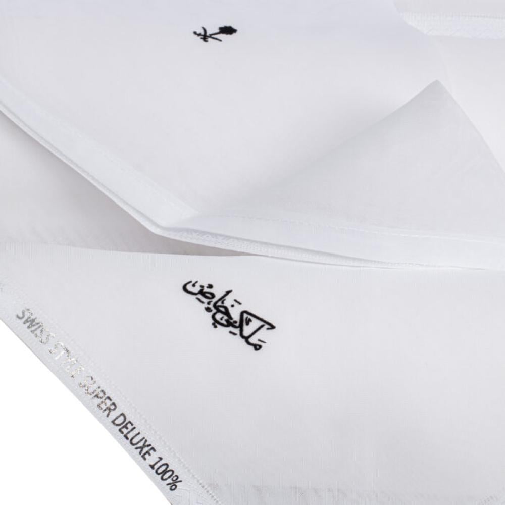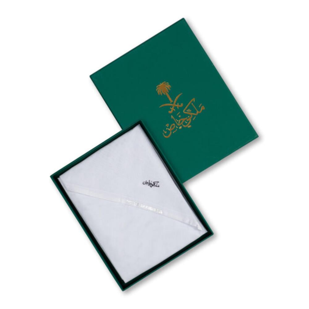 - صممت غترة ملكي خاص بيضاء وفق أعلى المعايير والمقاييس السويسرية، مما يعطيها فخامة ورقي