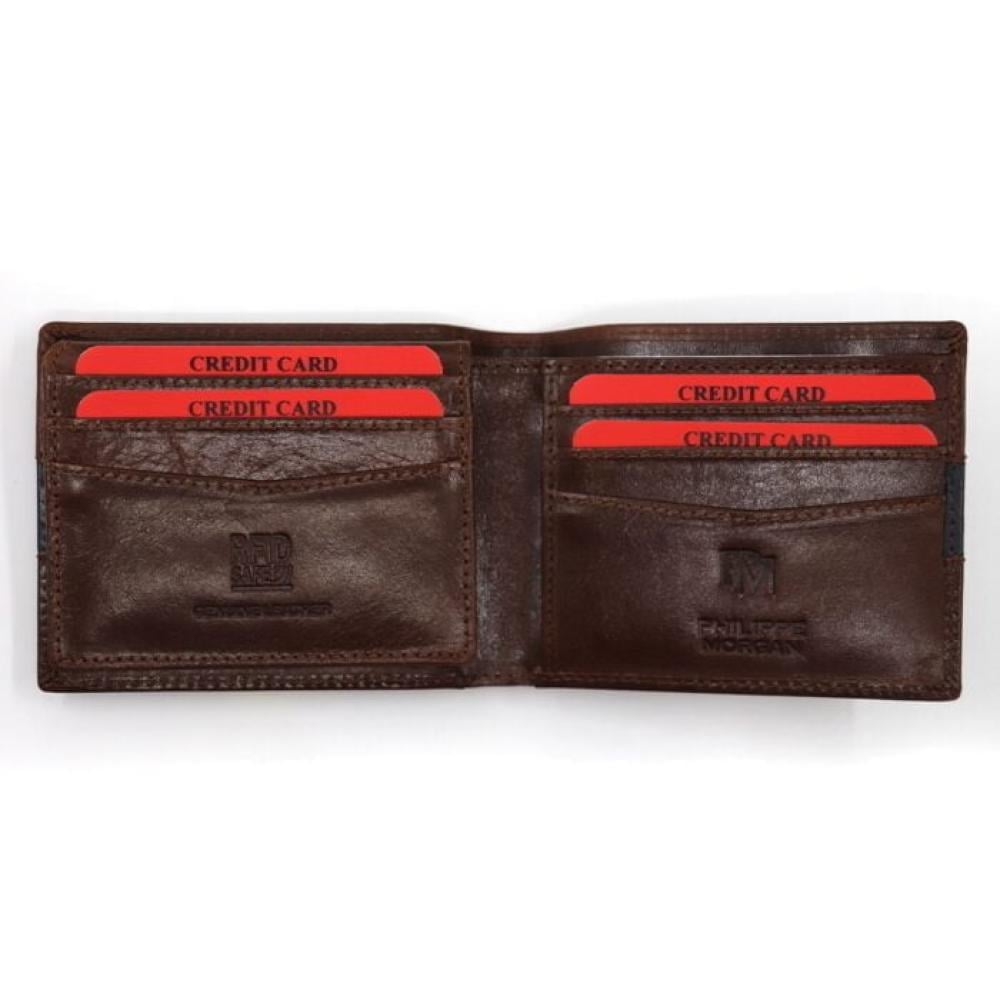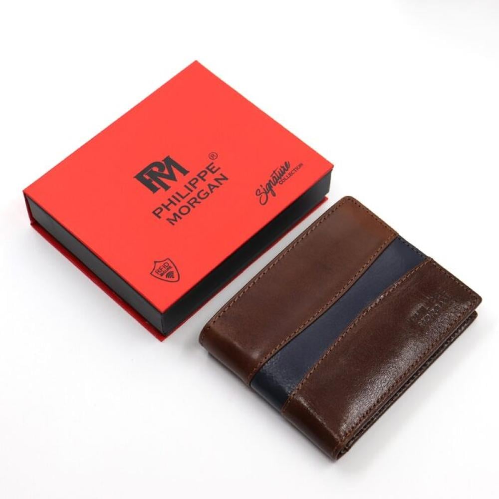 محفظة رجالية جلدية ماركة فيليب مورغان باللون البني الأنيق بنقوش مميزة بشعار ماركة فيليب تمنح الرجل الشرقي أناقة و تفاصيل تكمل إطلالالتك و أناقتك بكل مكان.