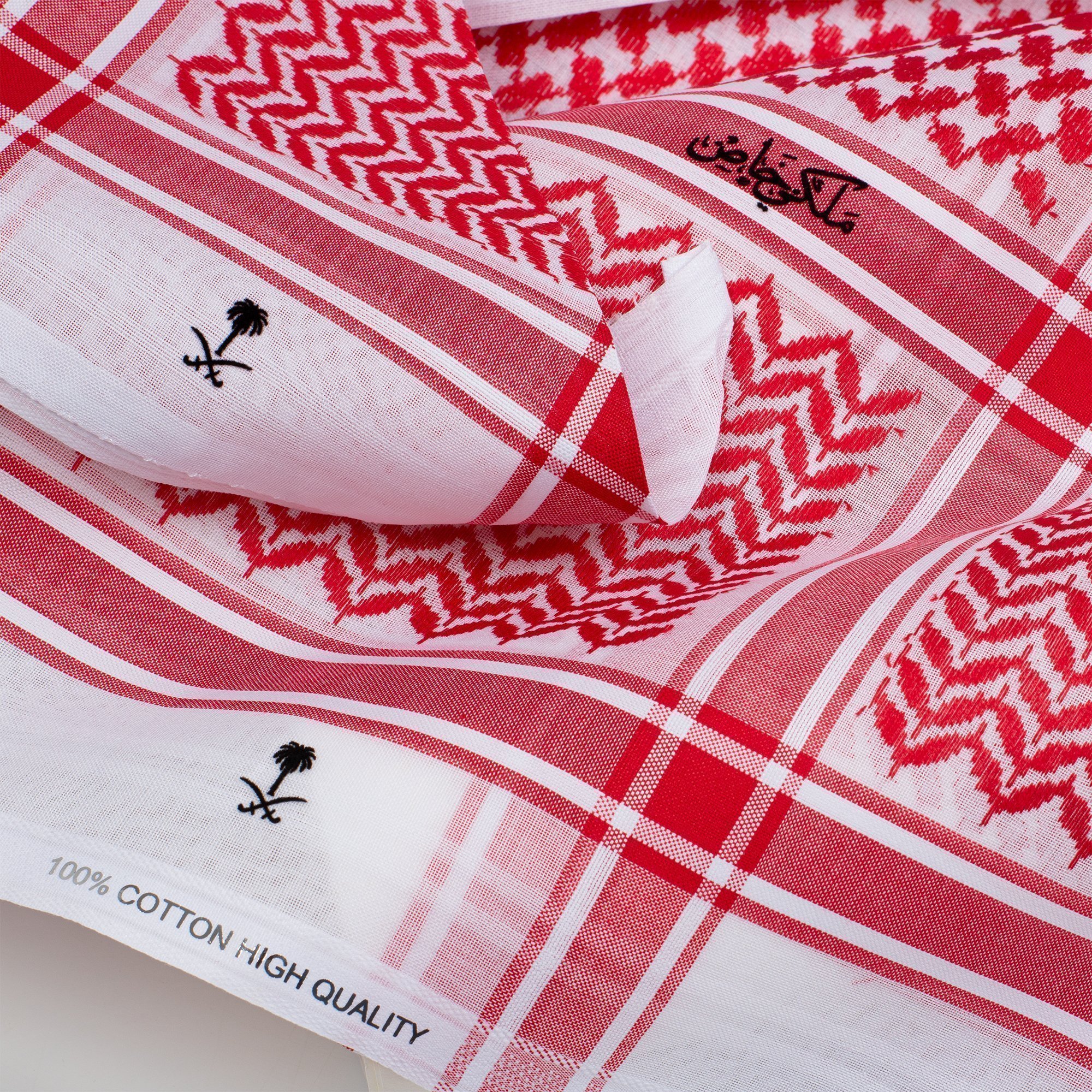 • الحياكة: كلما كانت الحياكة دقيقة، زاد ثبات الشماغ واستقامته عند اللبس.